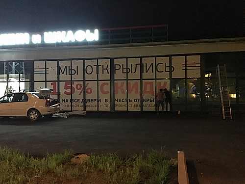 Оформление витрины магазина "Оптовик" при помощи Пинап пленки.
